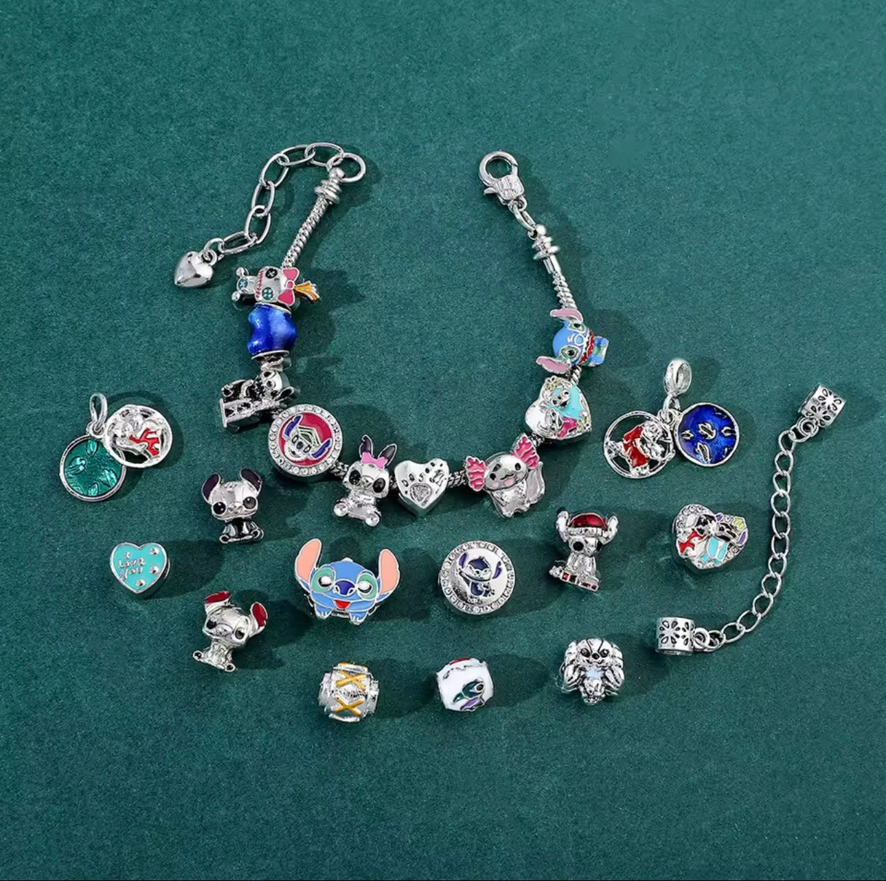 Kalendarz zawiera 2 regulowane bransoletki w stylu Pandory oraz 22 urocze charmsy z motywem Stitcha.